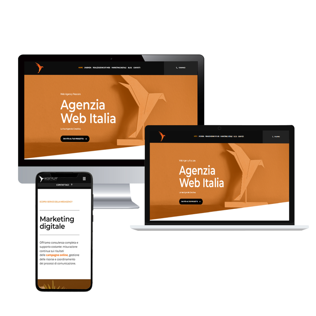 Noi di Agenzia Web Italia® svolgiamo da anni il lavoro di web agency Pescara con successo e dedizione sul territorio italiano, specializzandoci come agenzia di comunicazione in Abruzzo, lavorando nella progettazione e realizzazione di siti web, creazione di loghi, social media marketing, web marketing, indicizzazioni siti web SEO, per le imprese